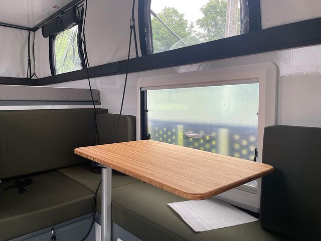La dinette en forme de C se replie en lit 38 "x77", abritera également un Wrappon ou un porta potti (non inclus)