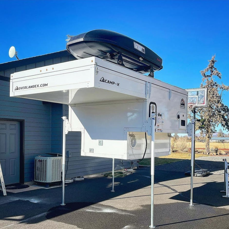La série CAMP-X composite Overland Explorer Vehicles (OEV) est une glissière composite légère dans un camping-car escamotable conçu spécifiquement pour le marché des camions pleine grandeur de 1/2 ou 3/4 tonne. Les camping-cars OEV sont conçus avec un panneau exclusif et un système d'extrusion pour garder un poids extrêmement léger, extrêmement résistant et extrêmement bien isolé.